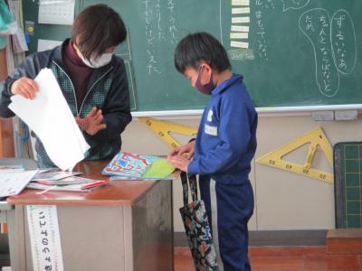2021年2月12日 12時10分学校司書の先生がおすすめの本を紹介してくださいました。