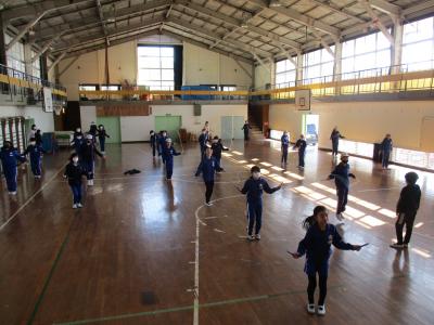 大休憩。4~6年生がなわとびに取り組みました。3分間はきつい。
