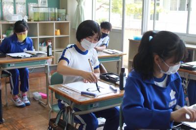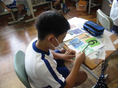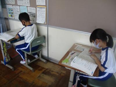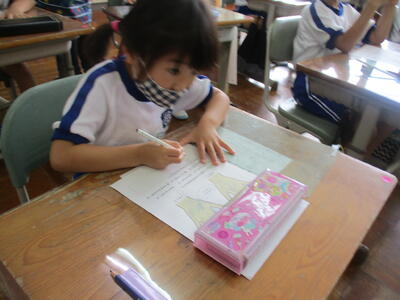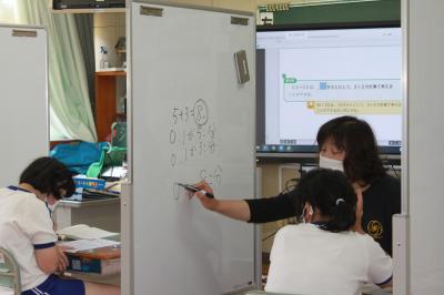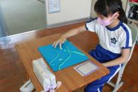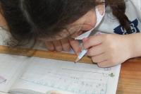 2年生は算数。定規を使って長さを測り,直線を引いていました。