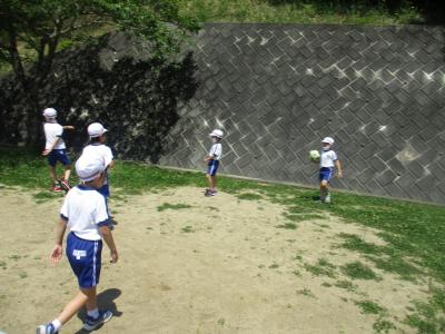 大休憩、元気な1・2年生。サッカーもブームになりつつあります。