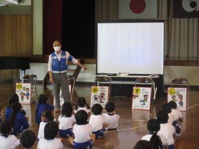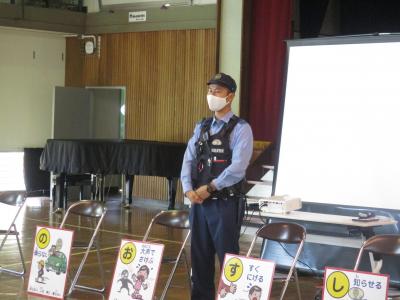 後半は体育館で日常の防犯についてお話をしていただきました。