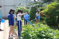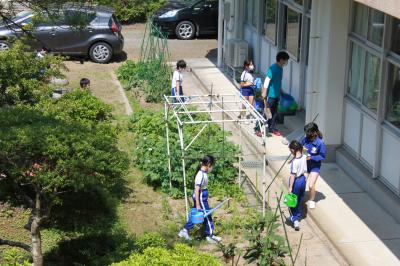 水をあげたり,支柱を立たりしていました。大きく育ってほしいですね。