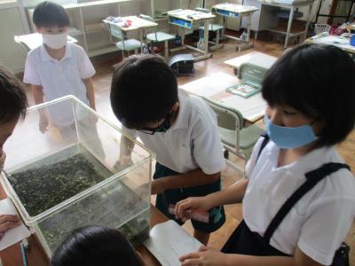 ヤゴを捕まえました。モンシロチョウに引き続き,教室で飼うようです。羽化の瞬間が見られるかもしれませんね。