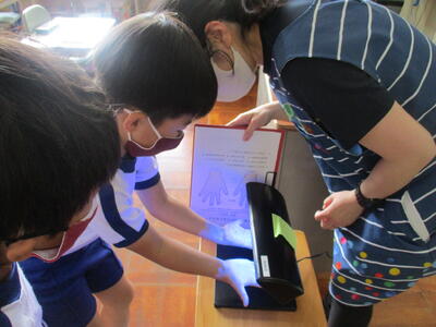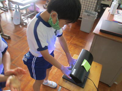 他の学年でも、手洗いチェッカーによる確認をしていきます。
