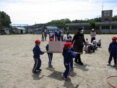 幼稚園と合同で避難訓練を行いました。最近、市内でも火災が発生している中、子どもたちに「いざ」というときのため、火災予防・避難の仕方について話をしました。