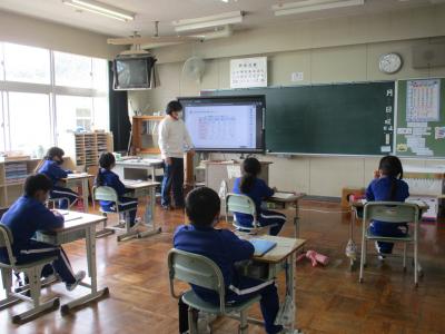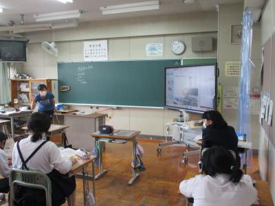教室でも、大型モニターを使った学習が進められています。