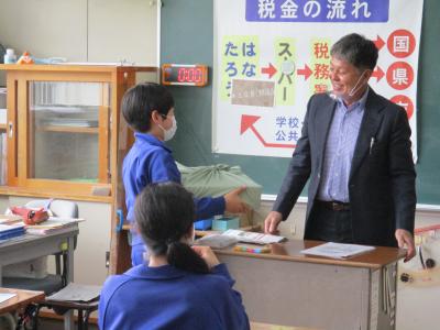 6年生を対象に、租税教室を行いました。今日の講師は、元PTA会長さんでした。