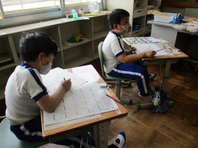 考えること、説明することで友達と一緒に学習内容を理解していきます。そして一番大事なことは、覚えたことを使うこと。練習問題で今日学習したことを確かめていました。