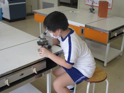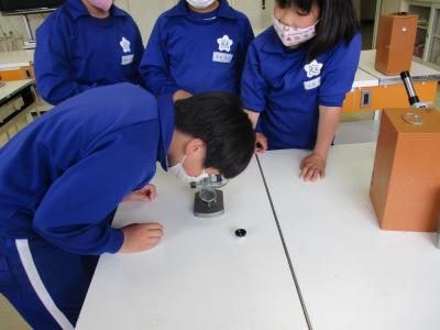 5年生が理科の授業で顕微鏡の使い方を学習していました。