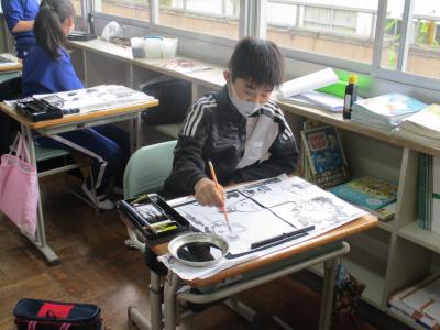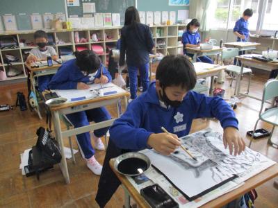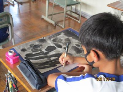 6年生が図工で墨絵に挑戦しました。