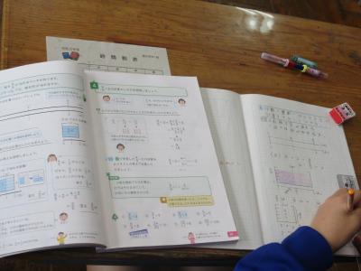 6年生算数。分数の計算を学習しています。