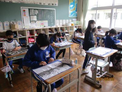 地図記号を学習する3年生