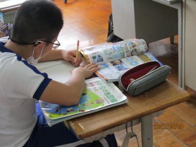 5年生社会。教科書や資料集を使って、寒い地域の暮らしをまとめています。