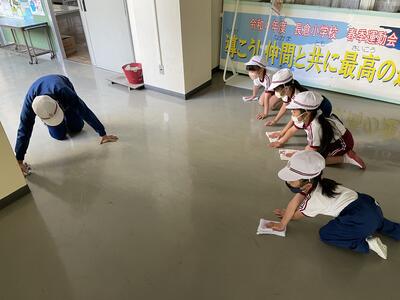 6年生児童、次は「拭きながら後ろに下がる」方法のコーチングへ!
