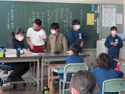 2023年3月3日 14時00分2月28日(火)、学校では校外子ども会を開催し、登校班の組織替えを行いました。これまで6年生が担ってきた班長を5年生へバトンタッチ、そして4月に入学してくる1年生を温かく迎える準備、安全に登校するためにはどうしたらよいか?など話し合いました。