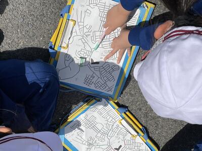 4月24日(水)の3年生は、社会科の授業で地図と方位磁石を手に校外へ。この道はどの道?そこには何があるかな?とフィールドワークをしてきました。途中立ち寄った くどう書店さん では、いつの間にか世間話が...、お世話になりました。地域の方々に温かく見守られていることを実感した次第でございます。