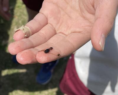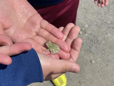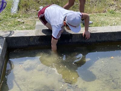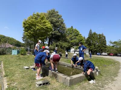 本校の「ながくら田んぼ」のため池も人気の場所。手を深いところまで突っ込んで、メダカやスネールを捕まえるのに夢中になっておりました。さらにカエルを捕まえて自慢気に披露したり、負けじとオタマジャクシまで捕まえてきて...。終わりのチャイムが鳴ると「またね!」と語りかけて放してあげるところ、優しいですね。