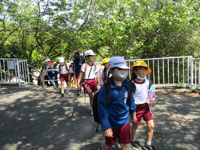 帰り道はやや上り坂。疲れからかゆっくりゆっくり。でも自分の荷物を手に、白と黄色の帽子が並んで学校にゴールすることができました! 全体として、2年生が「おれが!わたしが!」と先頭に立ってというよりも、1年生の面倒を見るのが2年生!という責任感をもち、1年生のやりたいことを聞いて、やっていることをサポートする姿をたくさん見ることができました。そして先輩に見守られて安心して活動する1年生は伸び伸びと。たくさんの笑顔が見えた低学年の遠足、大成功でございました!