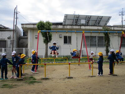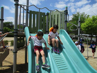 まずは五反田パークへ到着。交流班を中心にさまざまな遊びを展開。初めは遊具に向かって行った子どもたち。早速待ち時間が発生。でもそこでは1年生を優先する2年生の姿が、そして順番待ち。ブランコでは2年生が1年生の背中を優しく押してあげてと。