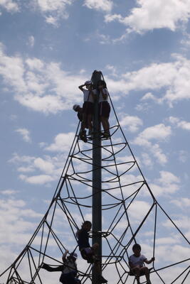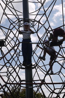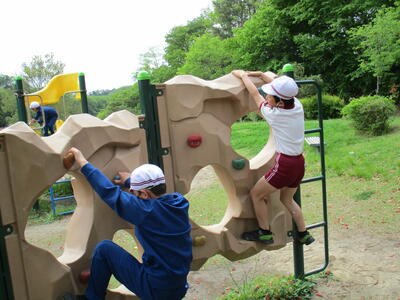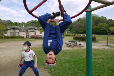 お目当てのわんぱく広場。ありがたいことにこの日は本校が独占状態でございました。昨年も訪れた4年生はあらかじめ何をして遊ぶかプランニングをしていたご様子。多彩なアクティビティに果敢にチャレンジしたり、広々とした芝生広場でボール遊びをしたりとやりたい放題でございました。やや人数の少ない3年生、4年生のすばしっこさに感化されて、それはそうやって攻略するのか!そんなに投げていいのか!そこまで登れるのか!と、いつも以上に大きく伸び伸びと活動していましたね。昨年の年度末、交流会をしていただけあって、お互い声を掛け合って仲良く遊ぶ姿も見えました。