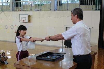 9月30日(月)は、全校集会で小学校児童理科作品展いわき地区展の表彰がありました。