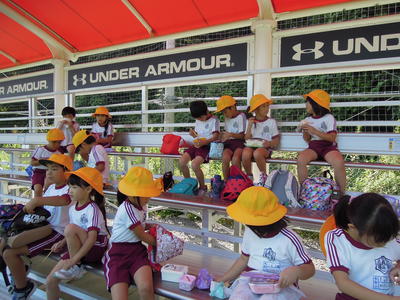応援席でお弁当を食べました。