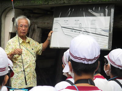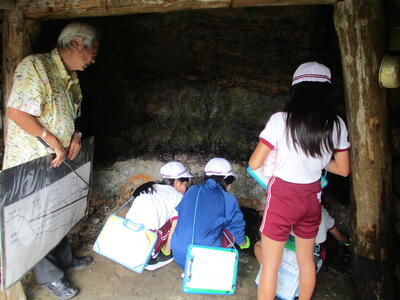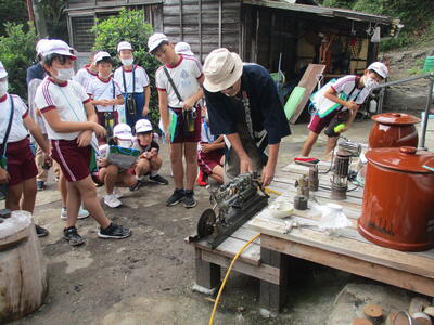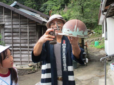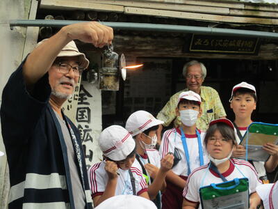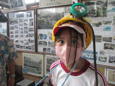 続いて、炭坑内での明かり=カンテラの学習。アセチレンランプの仕組みはまさに化学のお話でございました。それが電池式となって...というご説明。「昔の人ってすごいな!」と先人の発想・知恵に感心しておりました。資料館内の展示はすべていわき市の文化財、お宝!子どもたちにお宝=ホンモノと直接出会わせることの大切さを再確認いたしました。しっかりメモを取っていましたね!