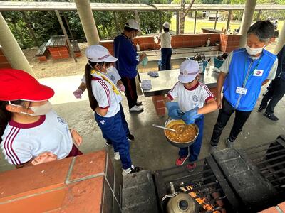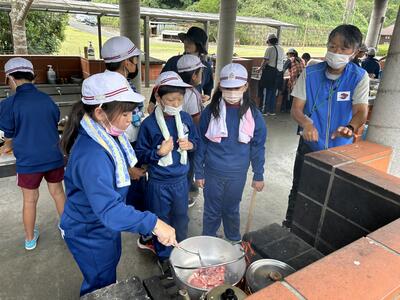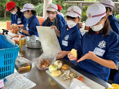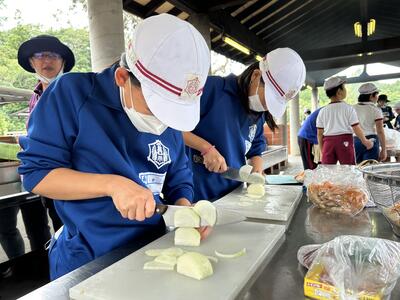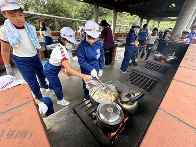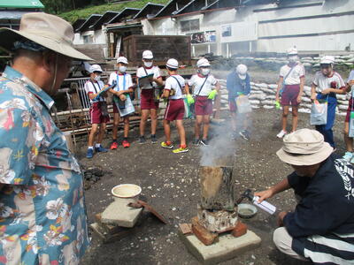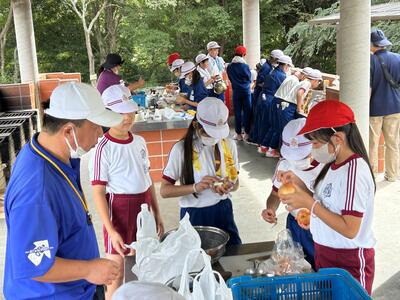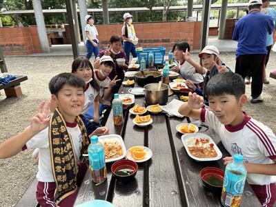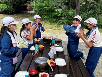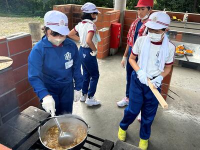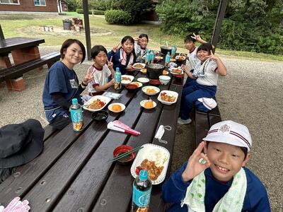 そしてAvt.4「野外炊飯」。カレーライスづくりにチャレンジ!馬場口先生からこつをご教示いただき、薪・かまど係、お米係、カレー係に分かれて、いざ調理開始!自分の責任を果たすだけでなく、お互い積極的に助け合い、美味しいカレーライスを完成させようと頑張る姿、とっても素敵でした!