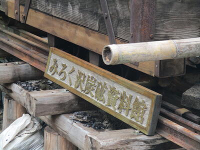 続いて、内郷地区の弥勒沢へ。ここは石炭発見の地であり、炭鉱とともに歩んできた本校のルーツでもあります。館長の渡辺先生やいわきヘリテージ・ツーリズム協議会遺産案内人の菅野先生をはじめとする皆様にお世話になりました。まずは、実際に手掘りをしていた頃の’穴’へ。今でも石炭が露出しています、お~すげー!