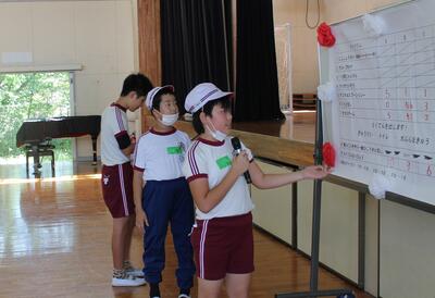 9月12日(火)のことになります。やまなし1組・2組の子どもたちが、湯本一小と湯本一中の子どもたちと、恒例の交流会を開きました。「今日は長倉小が会場だから、しっかりとおもてなししなくちゃね!」と声をかけるとご覧のポーズ、張り切ってますね!
