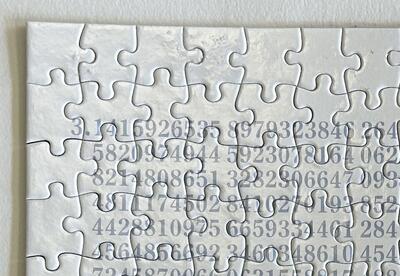 ずばり円周率パズルです!手がかりは「3.141592...」で始まる数字の並びのみ。有志が集ってこつこつとつなぎあわせていったのだそう、お見事!