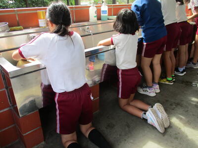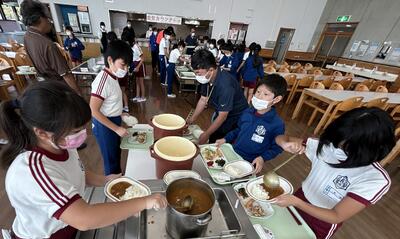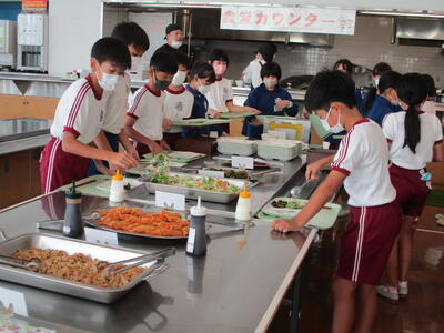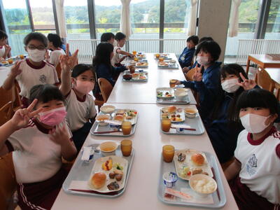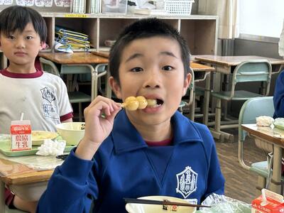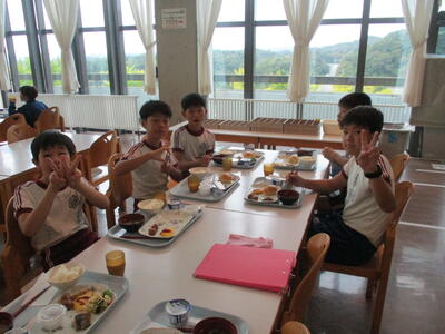 「食は大事!」ということを深く理解している子どもたち。なので、係活動の範疇を超えて、食べた所は率先して拭き掃除、「ごちそうさまでした!」を伝えなければと調理員さんを探し出して挨拶をしていました!「お家でもやってるよね!」には、「えへへ...。」とのことですけど、心の持ち様が素晴らしいですね!