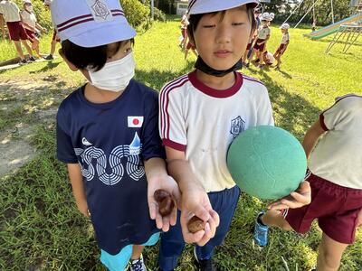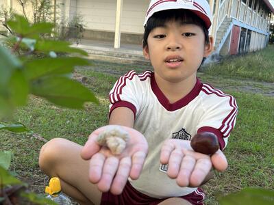 一方で、長倉の杜の風景も着実に変化してきております。子どもたちも時間を見つけては秋探し!にチャレンジしております。今一番の人気は栗の木。イガイガの中に実があって、手が届きそうで届かないところに実っていて、子どもたちの好奇心をくすぐります。先輩を頼る後輩、後輩を助ける先輩と、長倉小ならではの優しい時間が流れています。