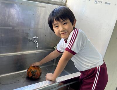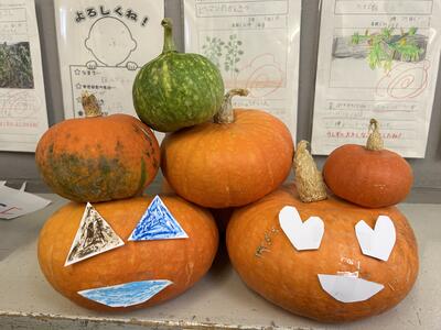 やまなし学級ではカボチャの収穫が進行中!今年は豊作なんだとか。また職員室で売り出してひと儲けでしょうか?