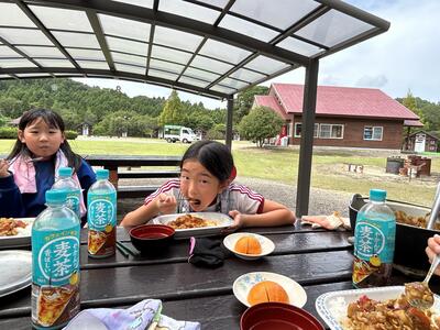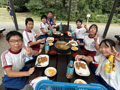 ともあれ、テンション高く活動した5年生、予定時刻より早めに調理完了でございました。が、「ちょっと待って、まだ11:00よ。お腹すいてるの?」という状況でしたが、「大丈夫で~す!」と、笑顔笑顔でご馳走を頬張っていきました。カレーの方は完食でございました、すげ~!