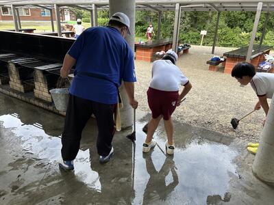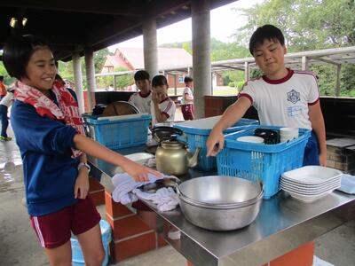 で、ご馳走様でした!となり、間髪入れずに誰かが「よっしゃ、やりましょー!」と叫びまして、もの凄い勢いでお片づけタイムのスタートとなりました。現6年生が昨年の宿泊活動でこの炊飯場を利用してピッカピカにしてきたことを5年生は知っていたんですね。それを思い起こして、先輩に負けまい!とそれはそれは熱心に活動していきました。