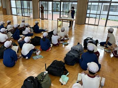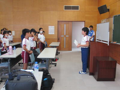 5年生は、9月25日(月)から1泊2日のスケジュールで、いわき海浜自然の家での宿泊活動にチャレンジしてきました。いつもテンション高めの5年生、約束の時間の20分前に集合完了!やる気満々でございます。そのままの勢いでまずは出発式。教頭先生より「たくさん学んできてください」とのお言葉をいただきました。