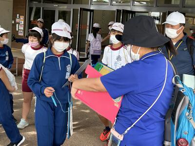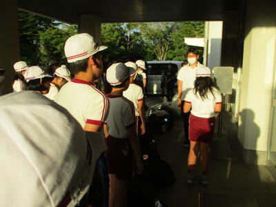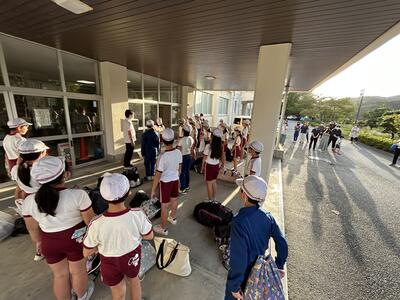夕方近くになっての帰校。子どもたちは元気に「只今帰りました!」とあいさつ。保護者の皆様、先生方に温かくお出迎えいただきました。ありがとうございました。