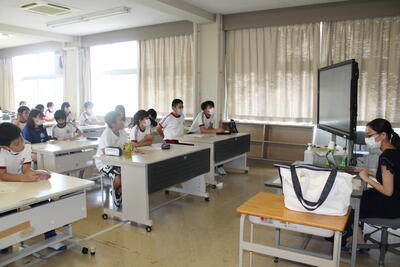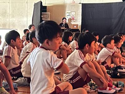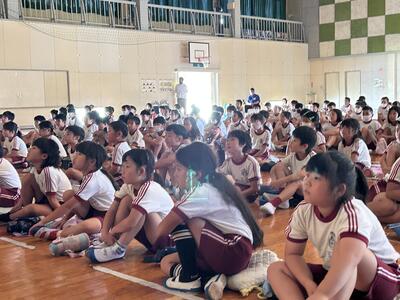 主なテーマは、生活習慣病とは何か? 多くの生活習慣病を引き起こす肥満の予防についてでした。肥満とは「体重が重いこと」ではなく、「脂肪が体に蓄積している状態のこと」で見た目だけの問題ではないですよ!のお話には、子どもたちも「そうなんだ!」と反応し、自分事としてとらえて真剣にお話を聞いていました。