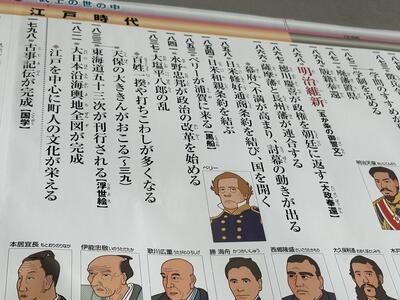 教室に掲示してある年表を見たり、気付いたことを確かめ合ったりして、長倉小学校の歴史に思いを巡らせました。授業の感想では「日本とか世界の歴史と長倉小の歴史がつながっているのが分かって凄いと思った!」「この後、長倉小がどうなっていくのかって考えてみた」等々、深い学びの成果を話してくれました、素晴らしい!