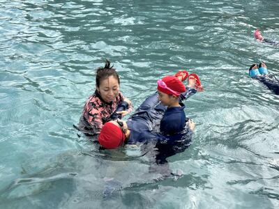 この後は、衣服を脱いで改めて入水。まるで大リーグ養成ギプスを脱いだかのように軽やかに動き回る姿が印象的でした。いつも以上ににぎやかに、そして楽しい時間を過ごしておりました。