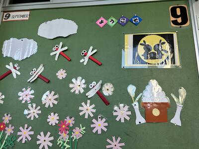 今回もボランティアさんは3年生の成長段階に合わせた深イイお話を取り上げてくださいました。まさに心のビタミン!ありがとうございました。学校図書館前の掲示板も秋バージョンに模様替え。涼しい秋はもうすぐそこまで来ていると思うのですが...。