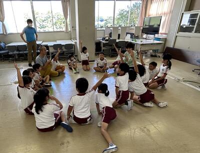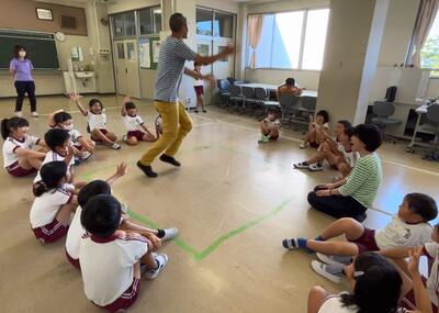 2年生と5年生を対象にして昨年から始まった演劇ワークショップ。今年は2年生3回、5年生5回シリーズで実施します。9月12日(火)は各学年の第1回目。こちら2年1組の様子を紹介。