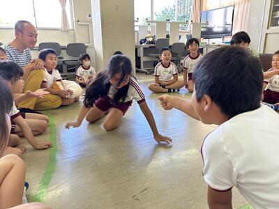 答えは「ロボット!」。これまた動きのリアルさに子どもたちも大喜びでございました。「それでは演技してみたい人は?」となりまして、子どもたちは次々と手を挙げて変身していきました。それぞれ何に変身したか分かりますでしょうか?