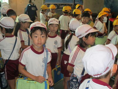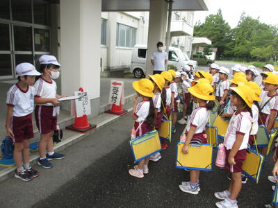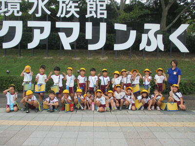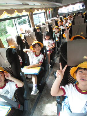 6年生が劇団四季のミュージカルを鑑賞した15日(金)、5年生以下の子どもたちは市内各所を訪問させていただき見学学習を実施しました。1・2年生の低学年チームは、アクアマリンふくしまと小名浜吹松公園へ。先輩の2年生が音頭をとって、お留守番の教頭先生に「行ってきまあーす!」と元気に挨拶をして出発しました。大きなバスでの遠出、特に1年生は嬉しそう!