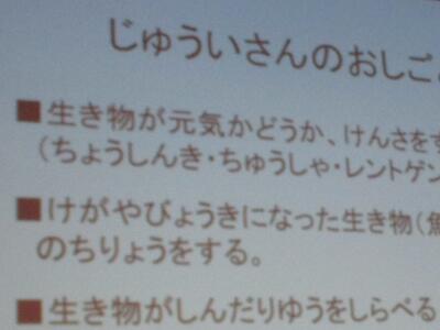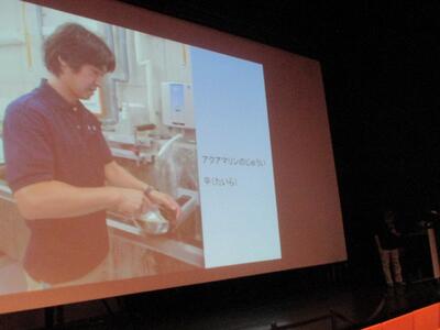 アクアマリンでは獣医の平先生にご講義いただきました。「お魚に与えるお薬は人間と同じものなんだよ」に「え~!」という反応!「シーラカンスは人間が出したプラスチックごみを食べてしまって大変なんです」とさりげなく海洋ごみ問題のお話もしてくださいました。