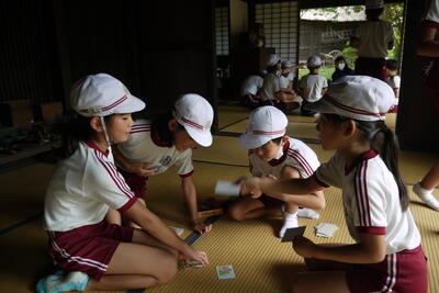 茅葺き屋根の古民家と生業を実感できるお庭をフルに活用して「楽しかった!」とのことでございます。お弁当タイム、いつも以上に「美味しい!」の声が聞こえてきました。