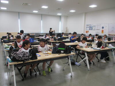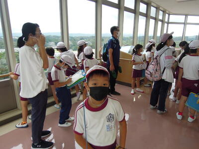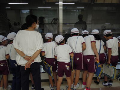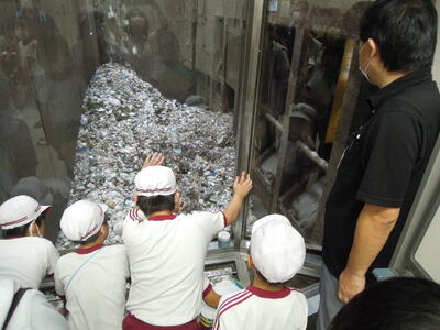 続いて、南部清掃センターでございます。3年生は、まずは近代的な建物・設備に驚いた様子。こちらも昨年訪問させていただいた4年生は、「おー!今年は中央管制室にも入れたぞ!」と大喜びをした一方で、そこから見たクレーンが運ぶゴミの種類を観察して、「ごみの量が凄い!」「ごみの中身も凄すぎる!」と面白さを通り越して、環境問題にも思いを巡らせておりました。職員さんの解説もとても分かりやすく、子どもたちは積極的に質問もして、教科書から飛び出した学習を展開することが出来ました。