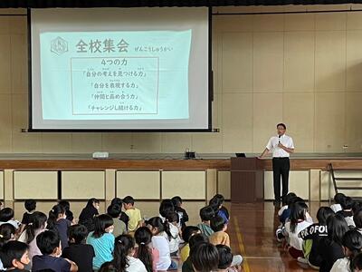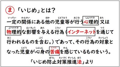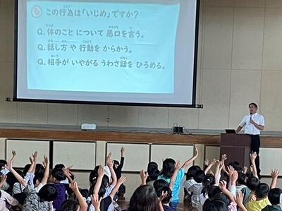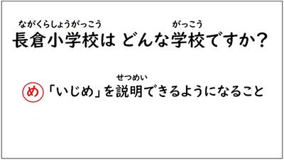 子どもたち一人ひとりの多様な幸せと社会全体の幸せである「Well-being」、第7次福島県総合教育計画の合言葉でございます。しかしながらまだまだ成長途中の子どもたち、時にはお友達とトラブルを起こしてしまうこともあります。多様な生き方を尊重し合う大切さとともに子どもたちの人権意識を高めていくことをねらいとして、5月の全校集会で、「いじめを説明できるようになろう!」をテーマにして子どもたちに解説し、少しの時間でしたが対話をしました。
