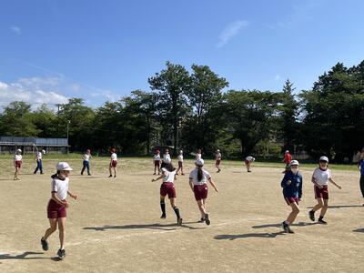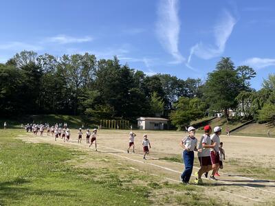 6月20日(火)爽やかな青空の朝を迎えました。校庭はいつものように全校生がジョギングにチャレンジ!6年生のことが大好きな後輩たちは、歩幅の大きさの違いを感じながらともに汗を流しておりました。